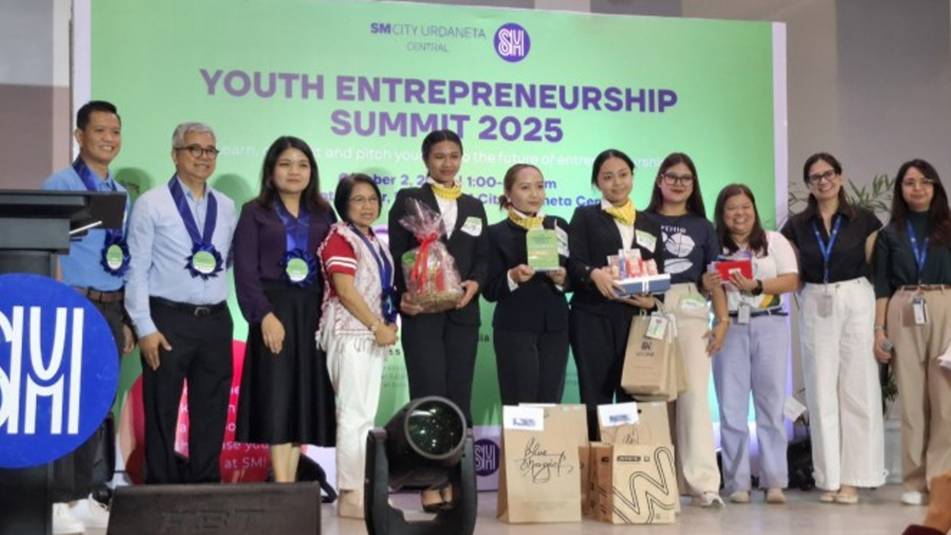 The group composed of Ara Mae Monserate, Alethea Cavago and Rachelle Castro, with their coach Eunicia Casilang, won the Business Pitch Competition during the Youth Entrepreneurship Summit 2025 initiated by the SM City Urdaneta Central management in partnership with the DTI and the Commission on Higher Education-Ilocos Region on Thursday.