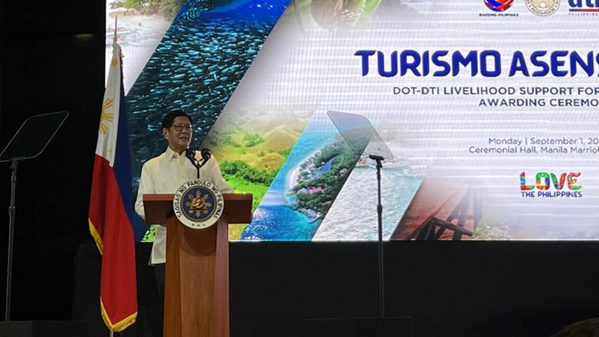 “Isa na ang turismo sa mga haligi ng ating ekonomiya. Nagdadala ito ng kabuhayan at pag-unlad sa libo-libong maliliit na negosyo saan mang sulok ng ating bansa (Tourism is now one of the pillars of our economy. It brings livelihood and progress to thousands of small businesses in every corner of the country),”Marcos said at the launch of the Turismo Asenso Loan Program in Pasay City.